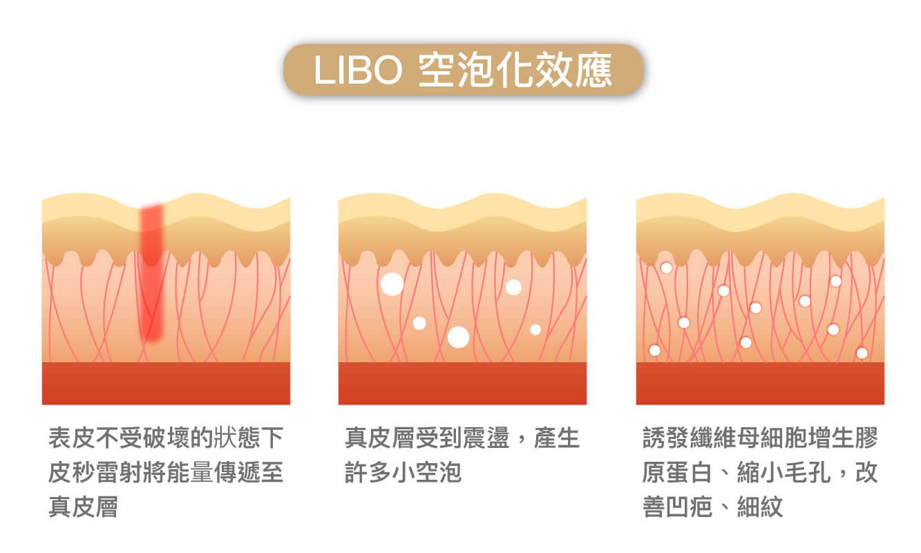 皮秒激光的能量能於一萬億分之一秒內釋放,瞬間擊碎深層黑色素,轉化為極細微的粉末狀,經身體代謝排出,淡化色斑並提亮膚色;而蜂巢透鏡則透過光學折射,把激光聚焦成點陣式輸出,產生空泡效應(LIOB),不傷表皮下刺激真皮層膠原蛋白增生,有效改善凹凸洞、細紋及肌膚鬆弛,令肌膚重拾彈性與光澤。